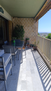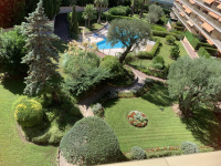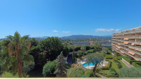 LE CANNET - MONT JOLI - A proximité des commerces, écoles, bus et accès A8, dans une résidence de standing sécurisée de 7 étages, avec parc, piscine, tennis et gardien. Au calme, agréable et lumineux 3 pièces de 84 m² en étage élevé, comprenant : Hall d'entrée, un spacieux séjour de 26 m² ouvrant sur une terrasse de 15 m² avec belle vue dégagée, une cuisine indépendante aménagée, dégagement avec placards, 2 chambres avec placard, dressing, salle de bains, WC séparé. Un garage fermé, un parking privatif extérieur et une cave complètent ce bien. L'eau froide, eau chaude et chauffage sont collectifs.